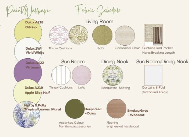 The original artwork at right by Byron Bay artist Jai Vasicek set the tone for this chosen colour palette, inspiration drawn from a rich kaleidoscope in shades of deep olive, leaf green, pinks, purples, and zesty citrine against fresh whites and neutrals.